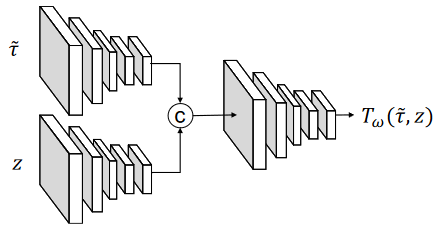 假设对抗纹理$\widetilde{\tau}$服从$p_{adv}$分布,分布可用能量函数$U\left(\widetilde{\tau}\right)$表示: \(p_{adv}\left(\widetilde{\tau}\right)=\frac{e^{-U\left(\widetilde{\tau}\right)}}{\int_{\widetilde{\tau}}{e^{-U\left(\widetilde{\tau}\right)}\mathrm{d} \widetilde{\tau}}}\) \(z\sim\mathcal{N}\left(0,I\right)\)