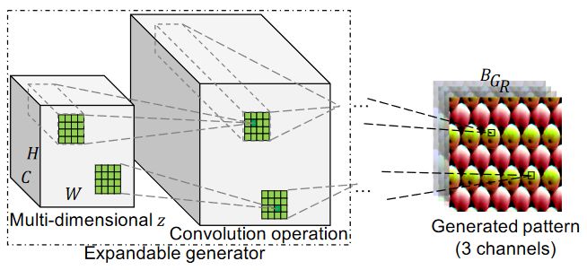 由于生成器可以控制变量生成不同的对抗纹理,由于纹理没有特定的形状,且需要足够大的输入才能生成很大的对抗纹理,因此直接生成足够大的对抗纹理十分困难。