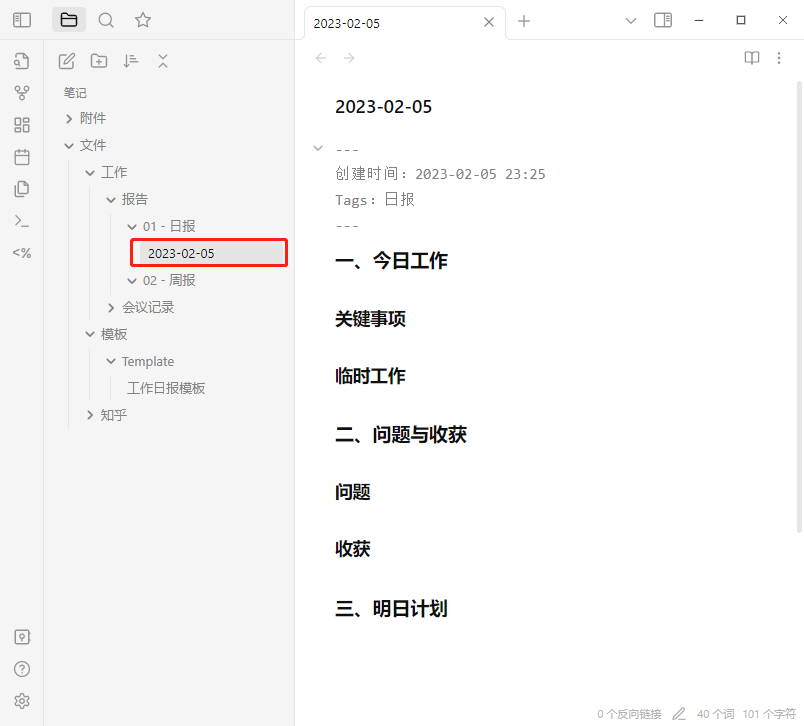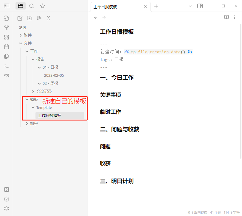 - Templater插件可以在不同文件夹中调用不同模板,生成新的文件。适合生成工作日报、论文笔记这些格式固定的文档。