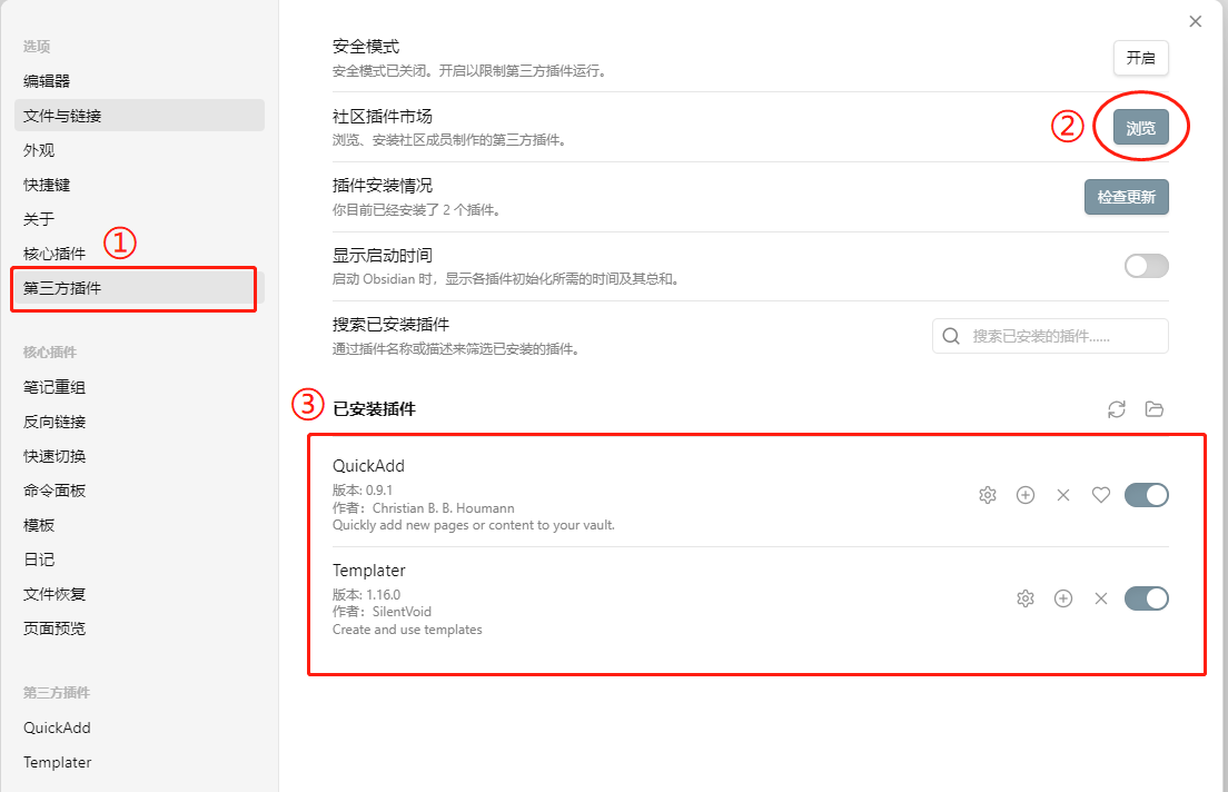 Obsidian插件安装界面